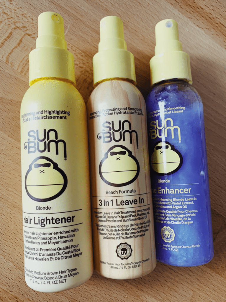 For me, this includes my hairbrush, waterproof scrunchy, hair elastic, and my hair lightener. Once again, SunBum has my heart with this one – after using the following three hair products together (pictured below), I can confirm that they’ve changed the game for me. Applying hair lightener in the morning and seeing results by the afternoon has to be one of the best feelings!